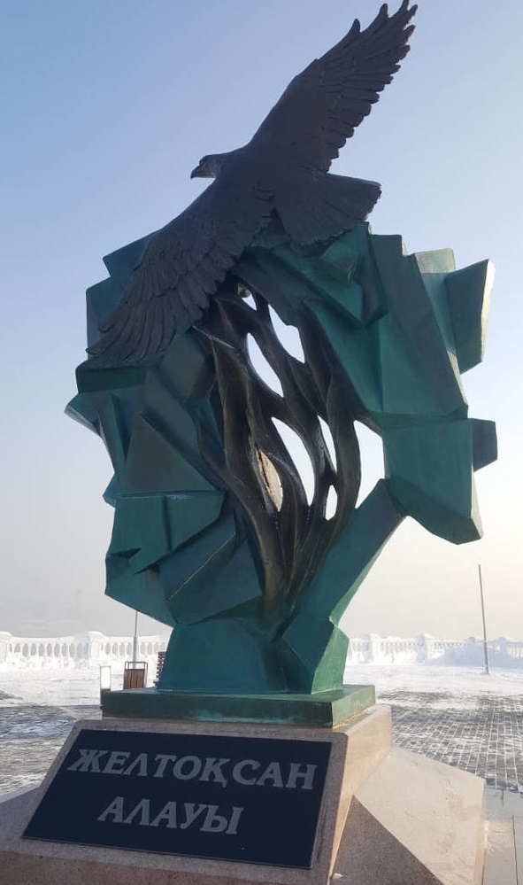 Скульптор Валерий Иванович Дранишниковтың көпқырлы әрі қызықты бұл туындысы – қыран құстар мен тазы иттермен аңға шығатын қазақтың ұлттық аңшылығын бейнелейді. Мүсін қаланың орталығында, Тәуелсіздік даңғылы мен Астана көшесінің қиылысында орналасқан. Шығарма полимербетоннан жасалған.